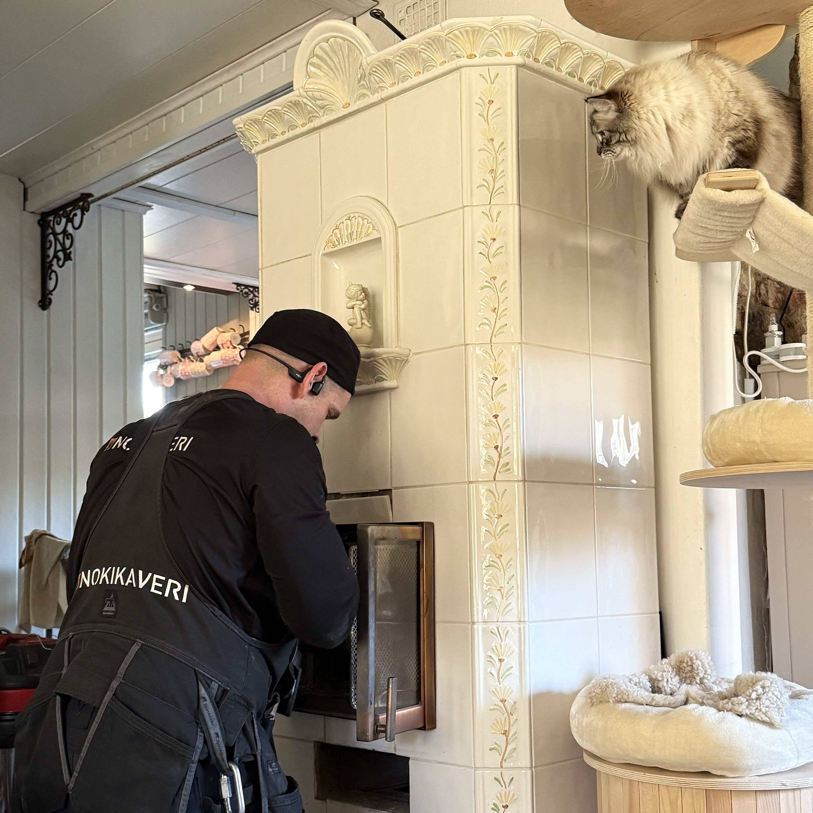 Nykyaikainen nuohous on siistiä, mutta imurin ääni voi olla kova herkkäkuuloiselle eläimelle. Lisäksi avoimet nuohousluukut houkuttelevat uteliasta lemmikkiä; pitämällä eläimen loitolla vältät riskin, että noki ja sotku tarttuvat tassuihin ja leviävät asuntoon.